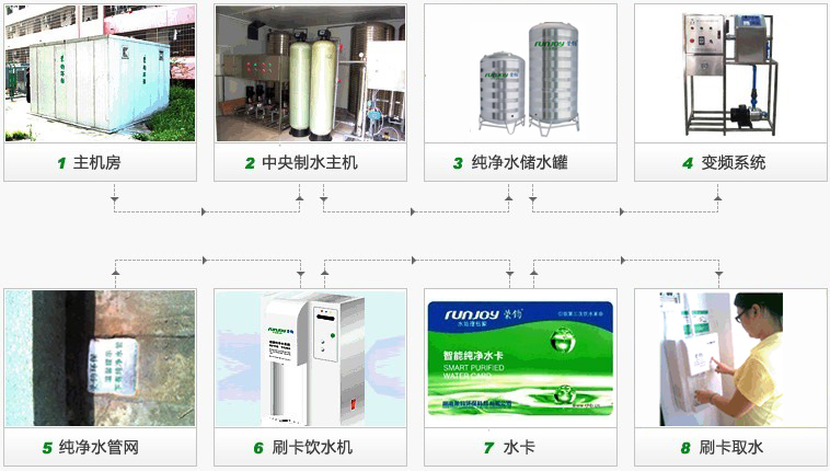 1、采用BOT形式:直接由我公司全額投資建設,包括主機設備、管網鋪設、智能刷卡飲水機,學校不承擔任何風險。