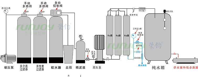 功能:原水泵提供多介質過濾器系統正常工作的動力源。保證后續工作所需壓力和反沖洗;